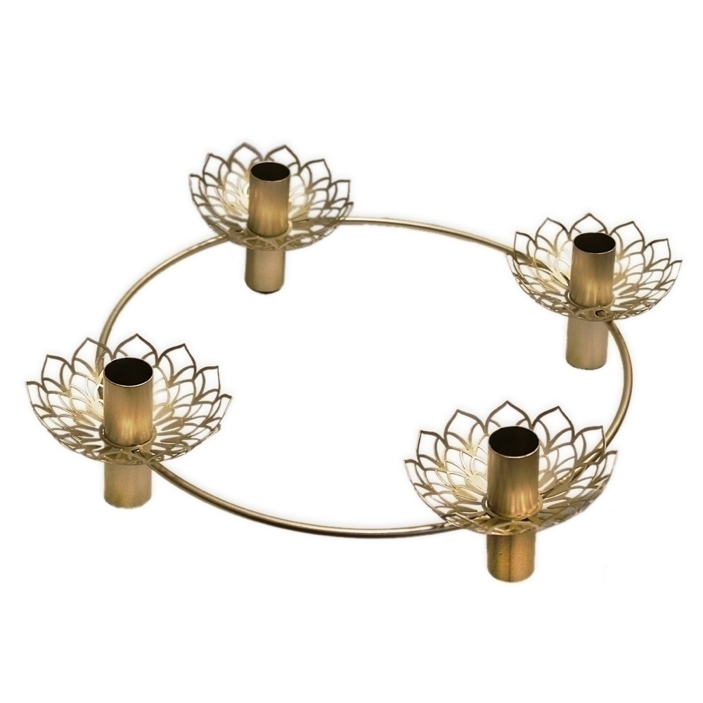 Luxusní kovový adventní svícen v šampaň odstínu přinese do vašeho domova nádech elegance. Skvělý doplněk pro vánoční dekorace.