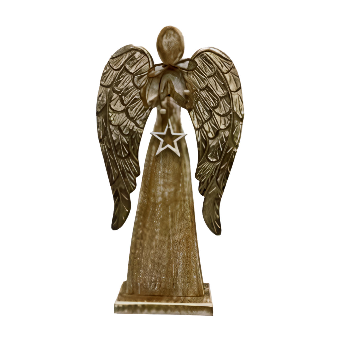Stylový anděl s přírodními detaily zútulní váš domov. Hodí se jako ozdoba na komodu nebo pod stromeček.