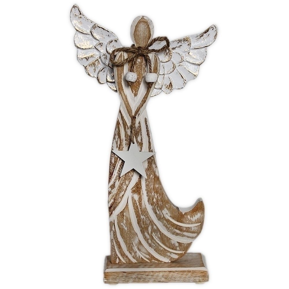 Přírodní dřevěný anděl s hřejivým designem. Symbol klidu, který ozdobí váš domov.