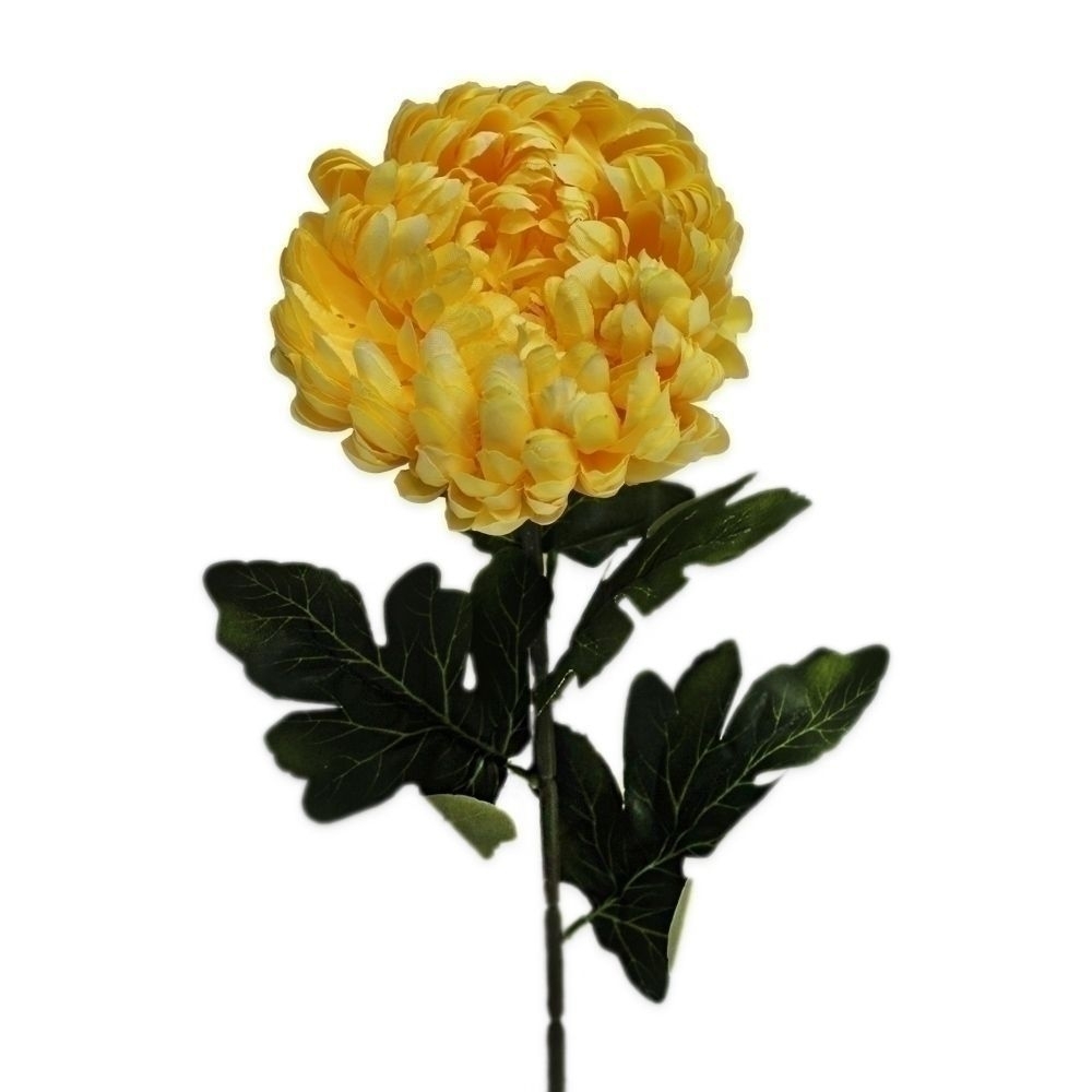 Zářivá žlutá chryzánthéma vnáší do interiéru slunce a pozitivní energii. Výborně se hodí pro sezónní výzdobu i jako osvěžující prvek do květinových kompozic.