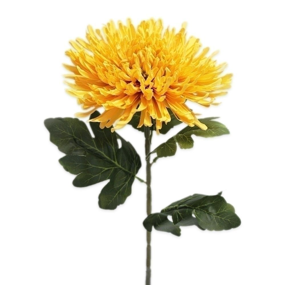 Zářivě žlutá chryzánthéma na 76cm stonku přináší do interiéru optimismus a energii. Vypadá skvěle ve váze nebo jako součást pestré podzimní dekorace.