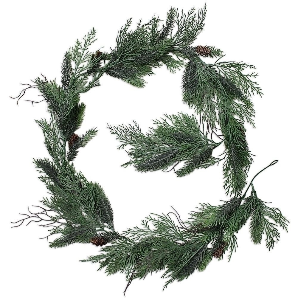 Realistická girlanda z cypřiše, ideální na zdobení dveří, stolů i zábradlí. Dlouhá 176 cm.