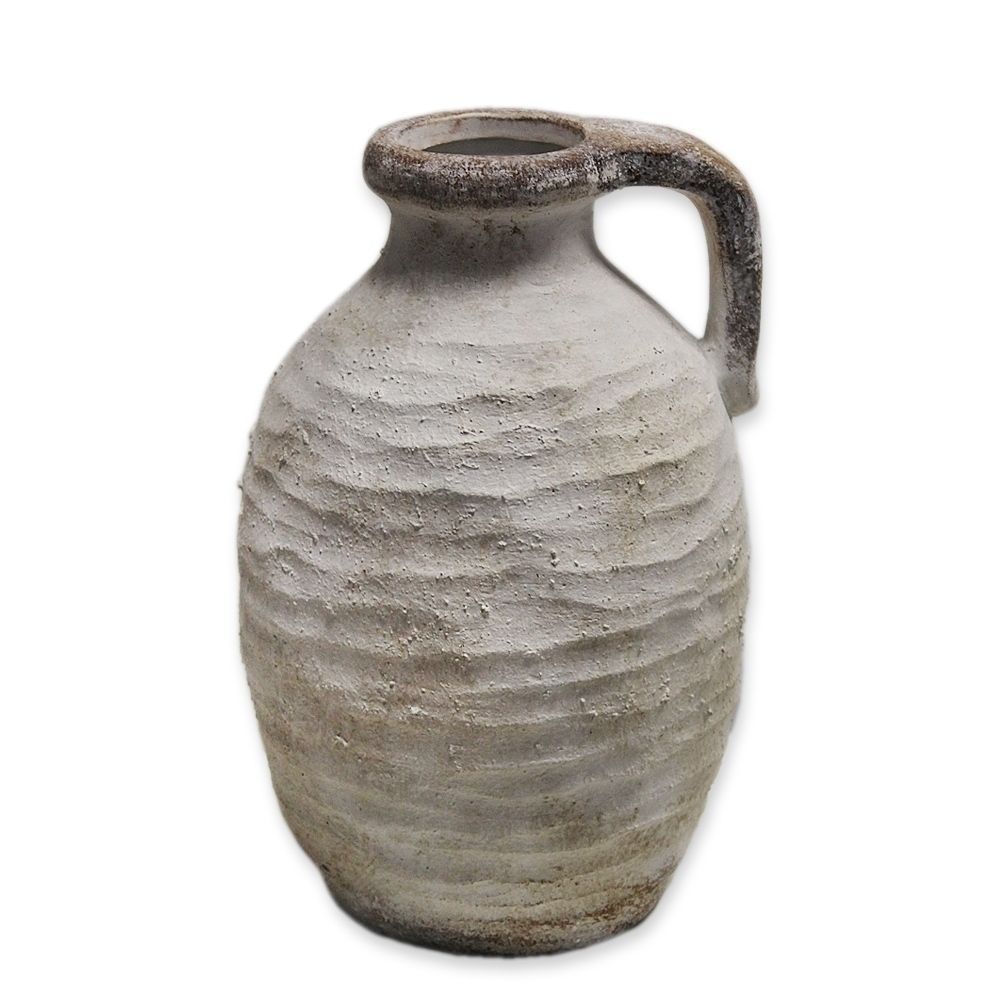 Stylový cementový džbán s jemnou patinou v krémové barvě. Ideální jako dekorace nebo váza pro sušené květiny.