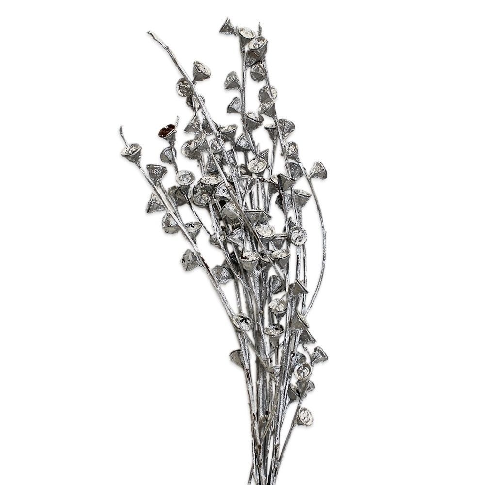Dekorativní větev s plody eukalyptu ve stříbrném provedení je skvělým doplňkem do svícnů, věnců a vánočních výzdob.
