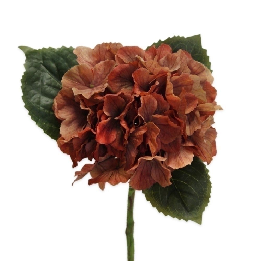 Tmavě oranžová hortenzie přináší podzimní atmosféru a výraznou barvu. Ideální volba pro sezónní dekorace a aranžmá s přírodním laděním.