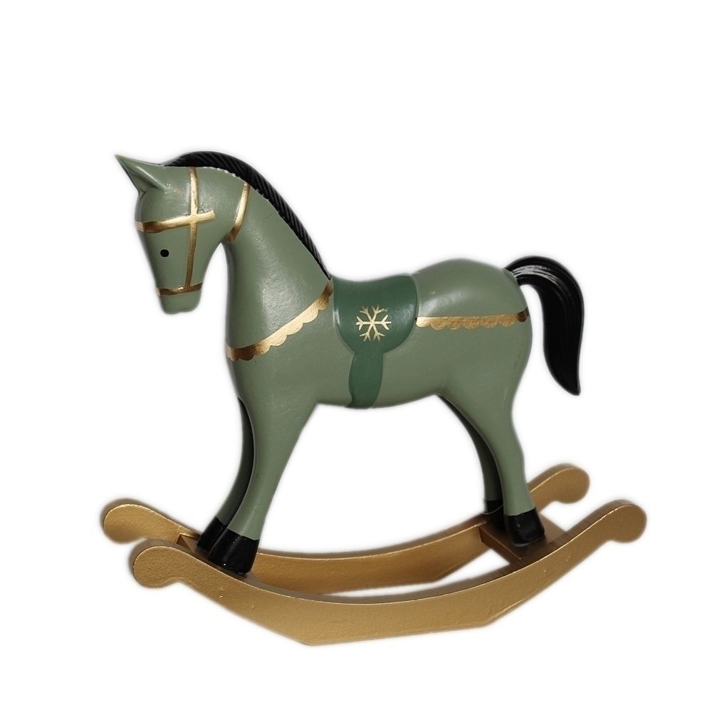 Střední houpací kůň ve stylové zelené – nadčasový doplněk s nádechem nostalgie.