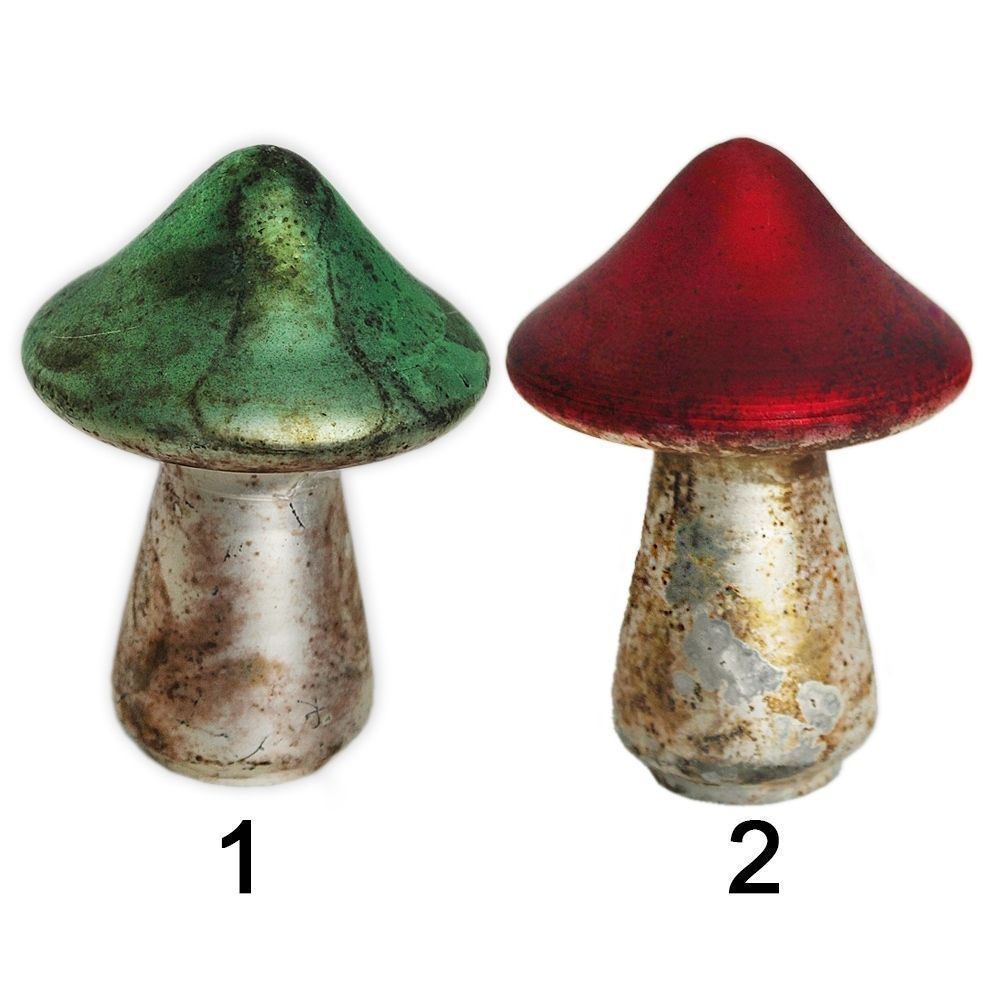 Skleněné hříbky v různých barvách – kouzelný doplněk pro vánoční stromeček či zimní dekorace. Přinášejí hravost a nostalgii.