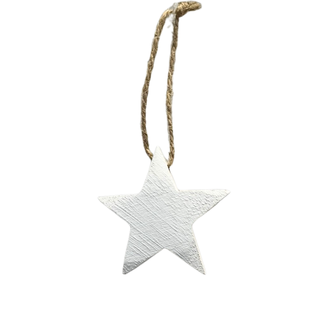 Hvězda závěs dřevo 11cm bílá