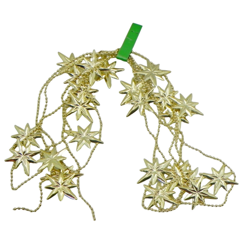 Hvězdičky řetěz plast 2,7m zlatá