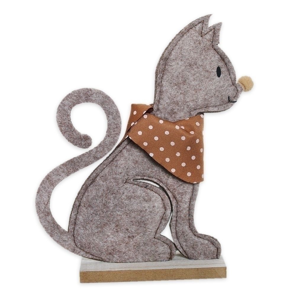 Velká filcová kočka, výrazný a měkký dekorační prvek.