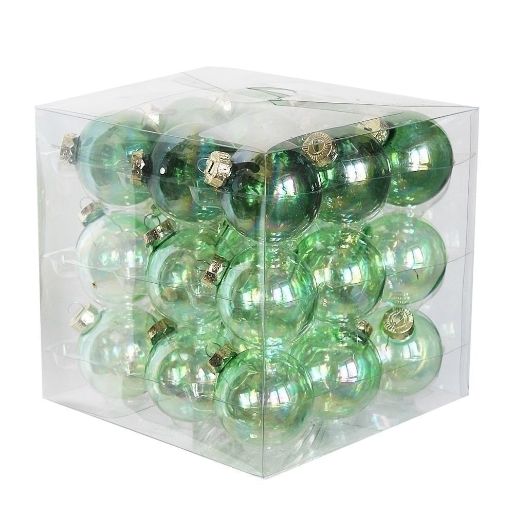 Zelené koule v čirém skle dodají stromku jemný a moderní efekt.