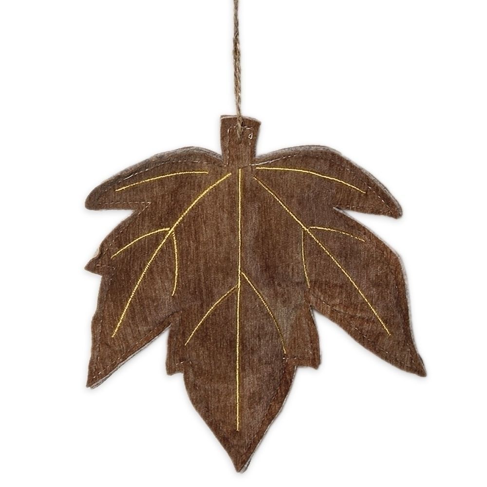 Závěsný textilní list v hnědé barvě – přírodní doplněk pro podzimní dekorace a věnce.