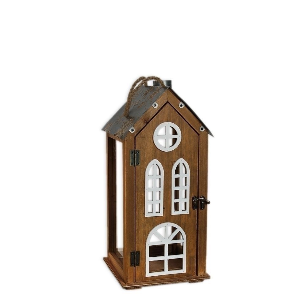 Rustikální lucerna z přírodního dřeva s kovovými prvky. Perfektní pro útulné večery u svíček.