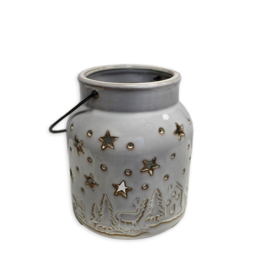 Malá porcelánová lucernička v krémové barvě, ideální na čajovou svíčku.