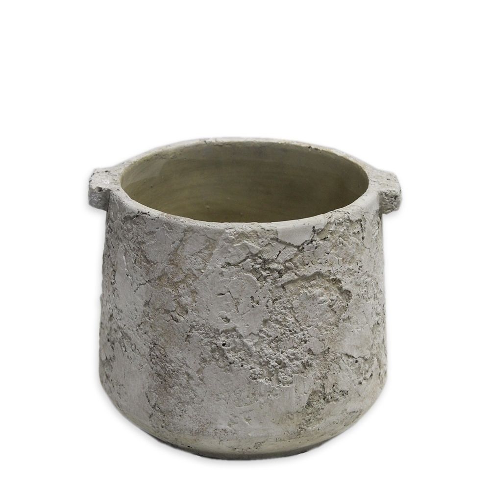Menší cementový obal s béžovou patinou. Skvělý doplněk pro drobné rostliny i stylovou dekoraci.