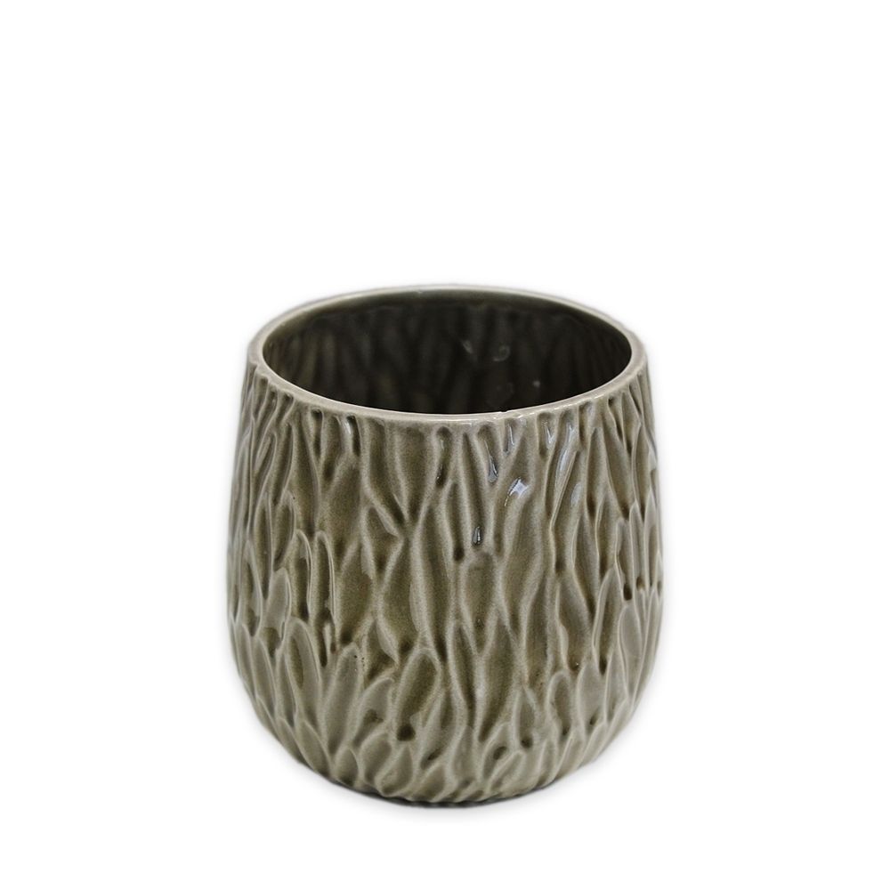Menší béžový keramický obal – jemná dekorace pro bylinky a drobné květiny.