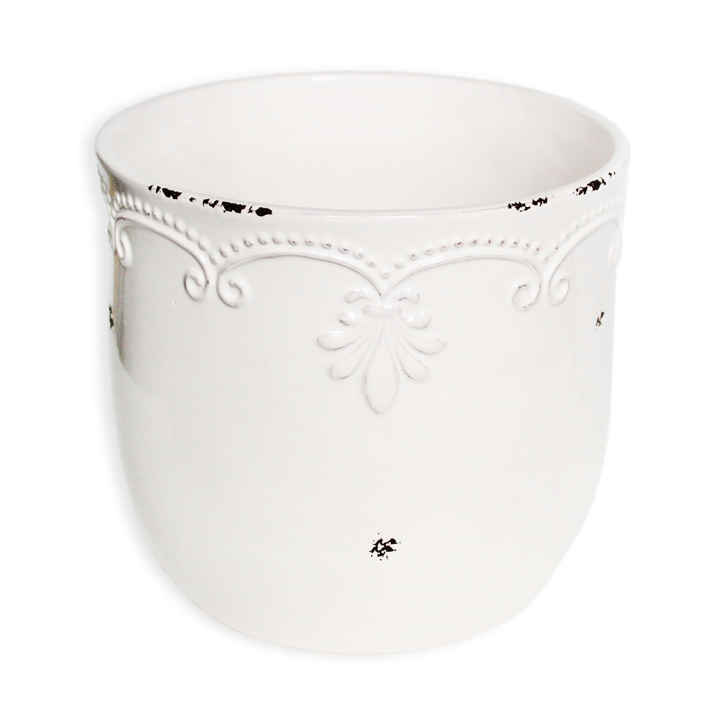 Bílý keramický obal v univerzálním rozměru. Hodí se do moderního i klasického interiéru.