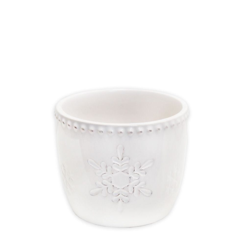 Malý keramický obal s vločkou. Ideální na drobné dekorace či svíčky.
