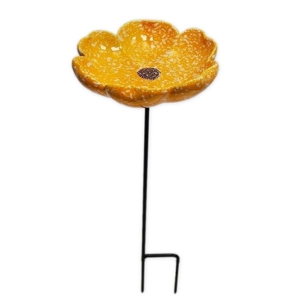 Zápichové porcelánové pítko ve žluté barvě, výrazný zahradní prvek.
