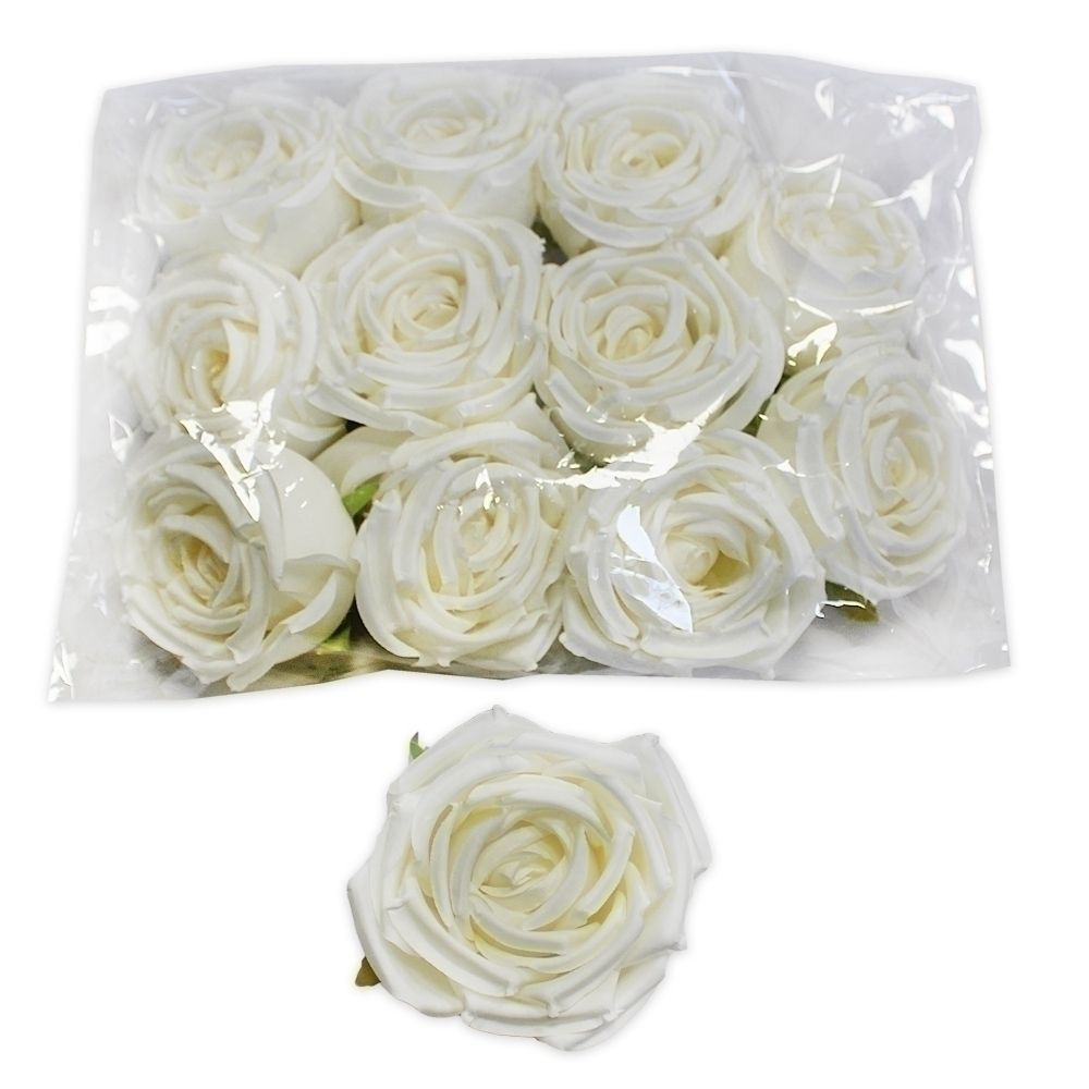 Růže hlava polyester 12ks/8cm krémová