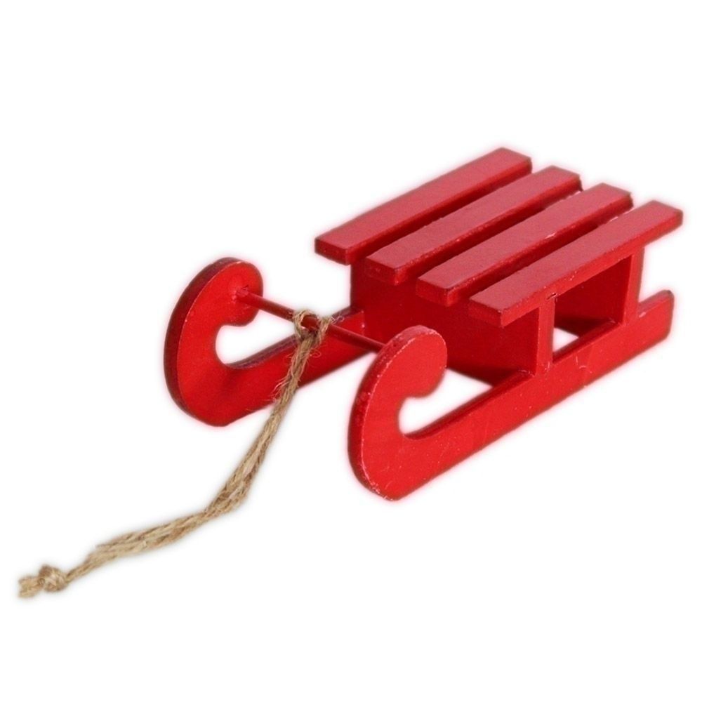 Sáňky závěs dřevo červená 13 cm