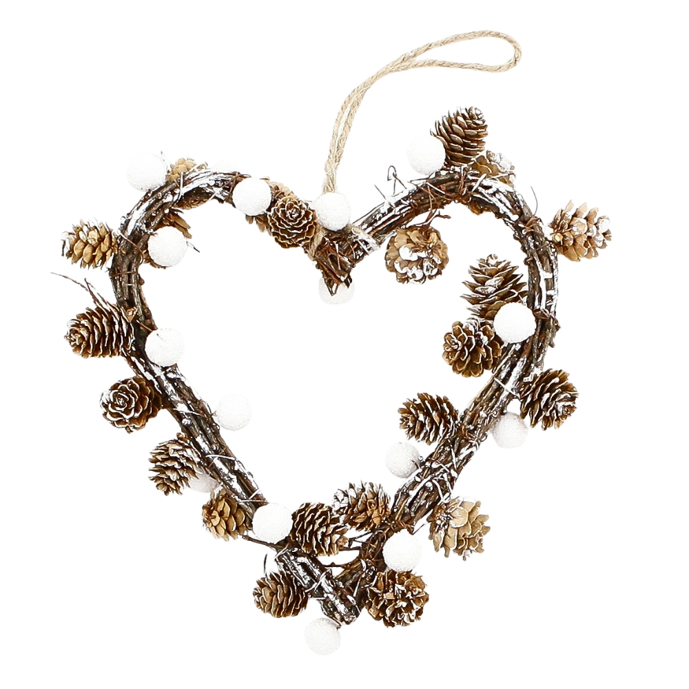 Srdce závěs šišky/proutí 31cm natural/bílá