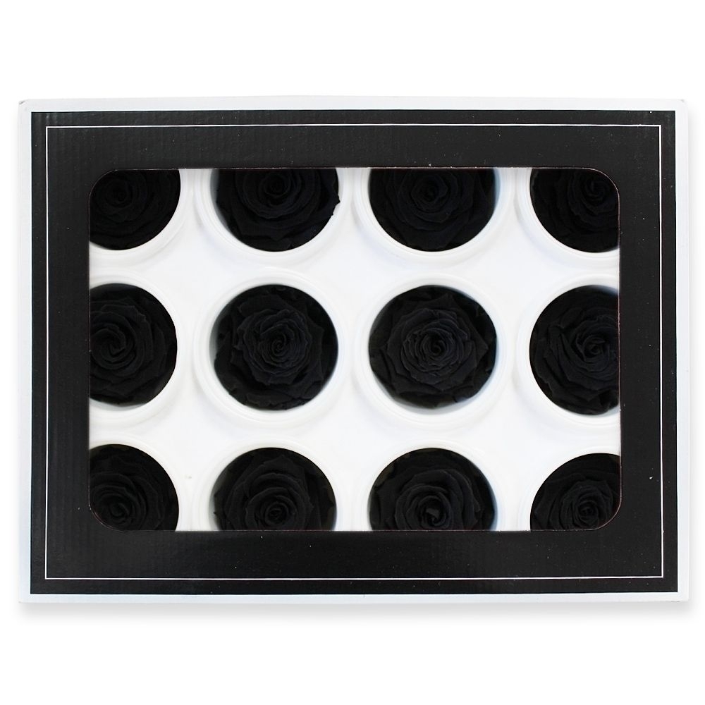 Stabilizovaná růže hlava 12ks/3,5cm černá