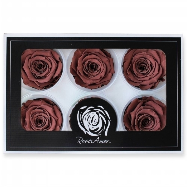 Stabilizovaná růže hlava 6ks/6,5cm hnědá