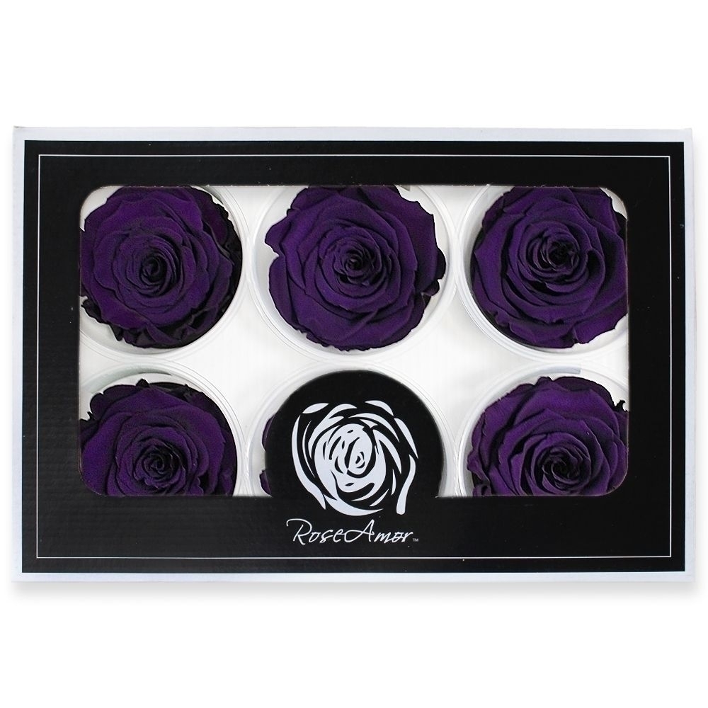 Stabilizovaná růže hlava 6ks/6,5cm tm.fialová