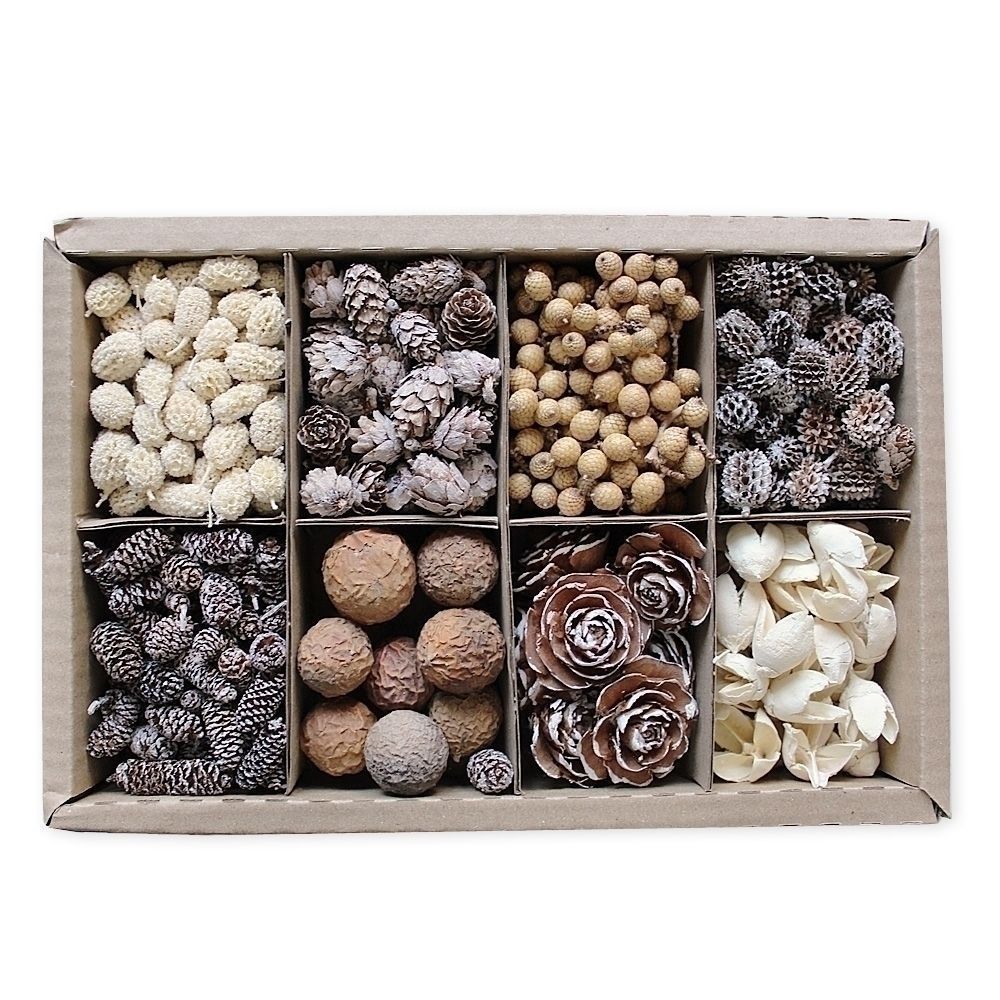 Bohatý mix přírodní sušiny v dekorativním boxu. Ideální pro tvoření aranžmá a dekorací.