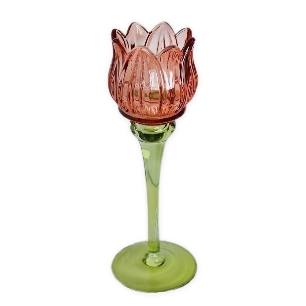 Svícen květ sklo 21,5cm oranž