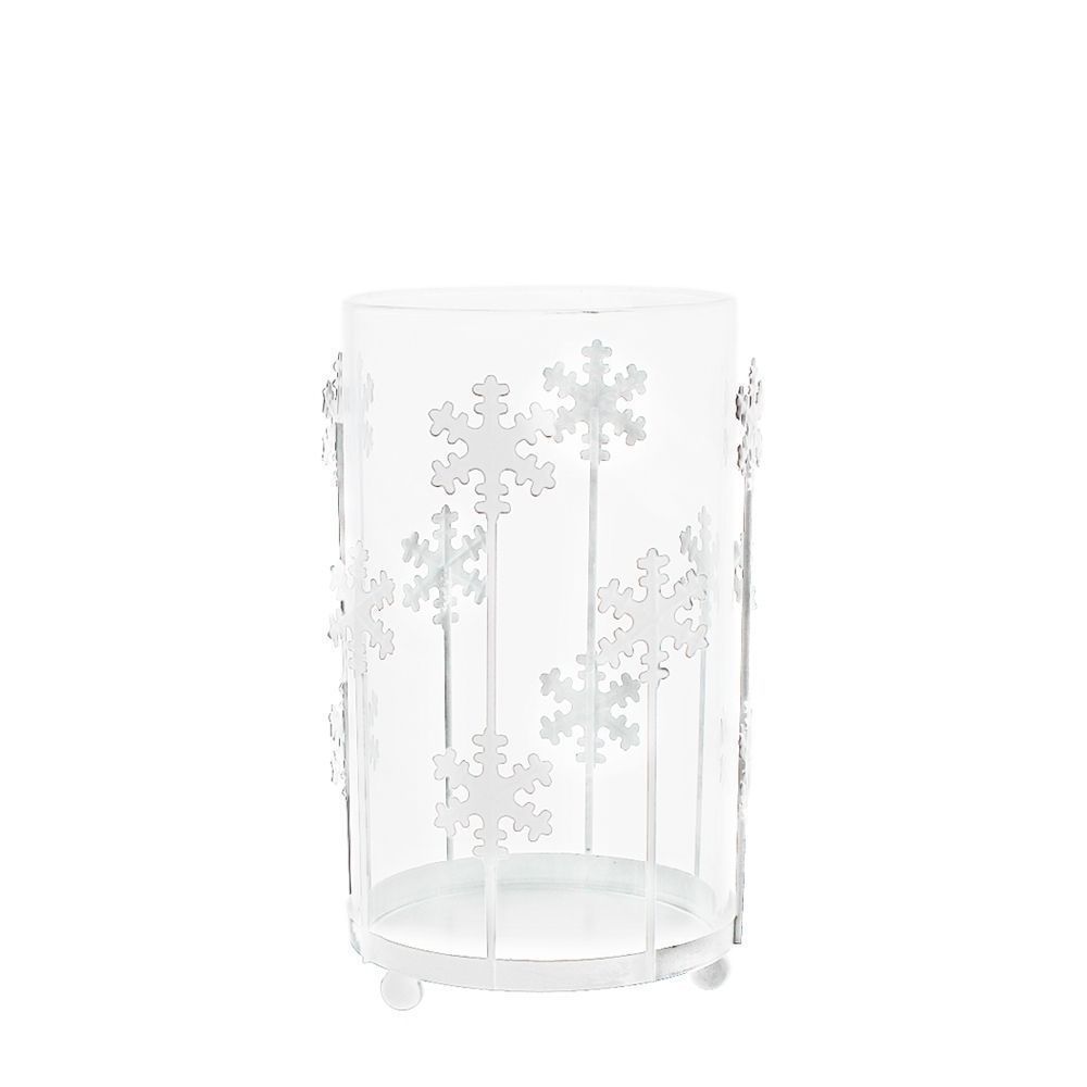 Svícen vločky sklo/kov pr.13V21,5cm bílá