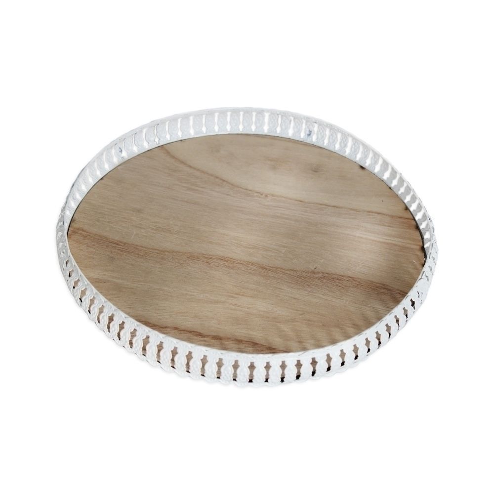 Malý kulatý tác – kombinace dřeva a kovu pro moderní i rustikální interiéry.