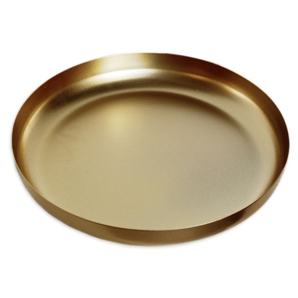 Velký zlatý kovový tác dodá vašemu stolu luxusní vzhled – ideální pro svíčky, vánoční aranžmá nebo slavnostní servírování.