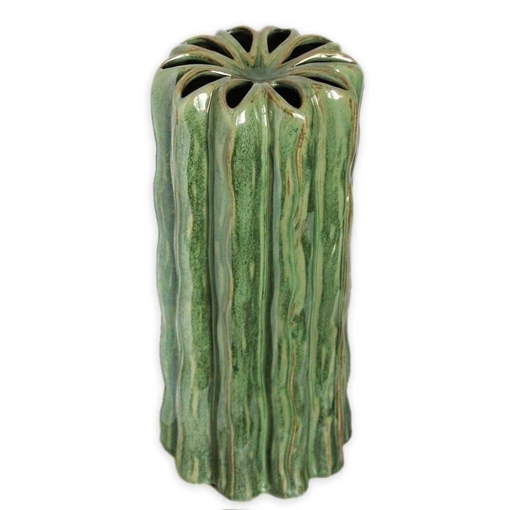Vyšší porcelánová váza v elegantním zeleném odstínu je ideální pro větší kytice nebo dekorativní větve. Díky jednoduchému designu krásně doplní moderní i rustikální interiér.