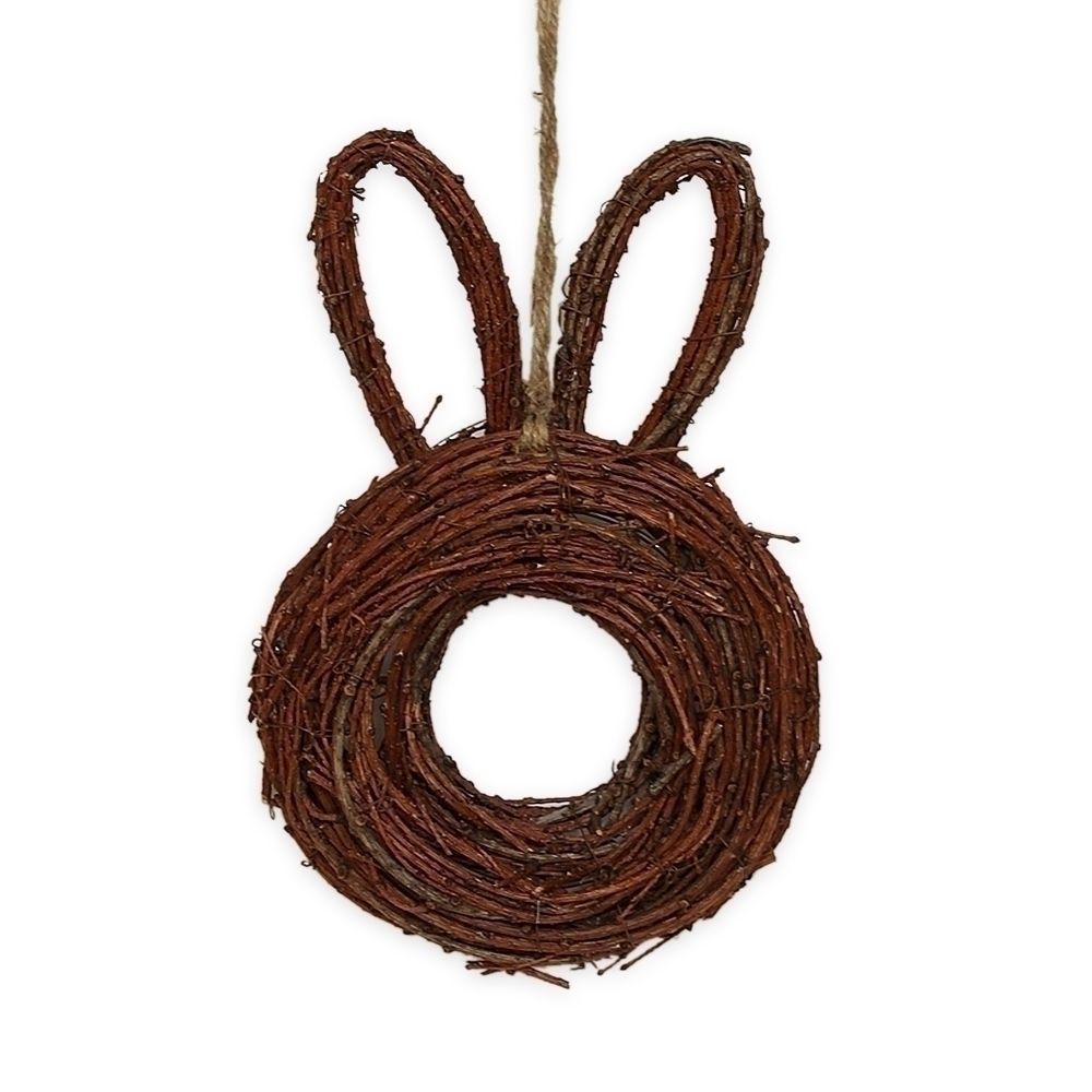 Roztomilý jarní věnec se siluetou zajíce vytvořenou z větví. Krásná volba pro velikonoční výzdobu s přírodním nádechem.