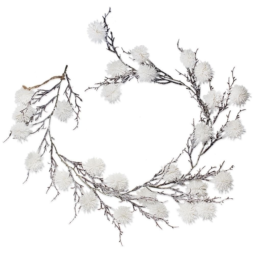 Nádherná bílá girlanda s efektem sněhu – kouzelná dekorace na zábradlí, dveře i stůl.